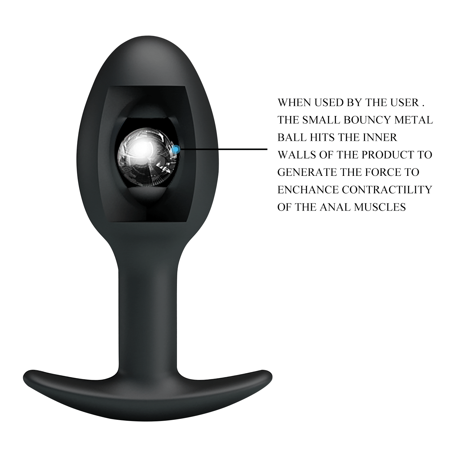 Ideal para iniciarse en el placer anal. En su interior contiene un peso -una bola metálica- que al entrar en movimiento genera la contracción de los músculos anales multiplicando el goce. Su punta pequeña redondeada es suave y fácil de acomodar.